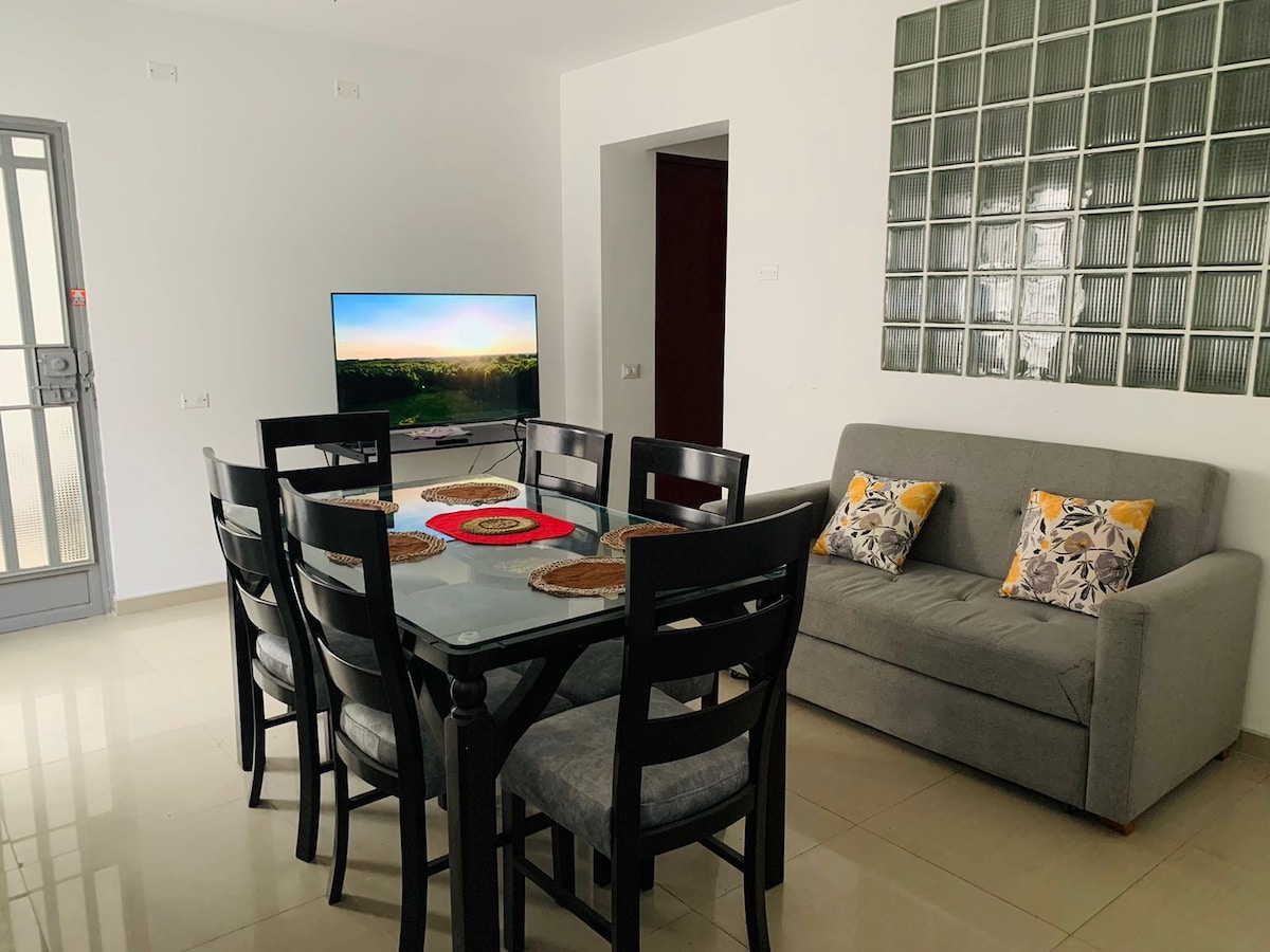 Confortable departamento ubicado a pocos minutos del aeropuerto. La propiedad se encuentra en plena avenida ,en una zona tranquila muy fácil de llegar a tan sólo unos pasos de tiendas , panaderías ,restaurantes y centros médicos. Contamos con una terraza con vista al aeropuerto , Todas las habitaciones cuentan con smart tv con servicios de streaming ( Netflix y Disney) .