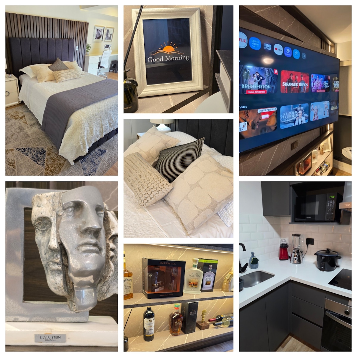 Modern fully furnished apartment, ideal for long stays. Features high-speed Wi-Fi, a 65” Smart TV with Netflix and Disney+, a fully equipped kitchen with espresso machine and water filter, washer-dryer, queen-size bed, and a balcony. The building offers a swimming pool, gym, and coworking area. 24/7 self check-in, smartkey, free parking, and 24-hour security. Strategically located in San Miguel, close to universities and shopping centers, and less than 20 minutes from the airport.