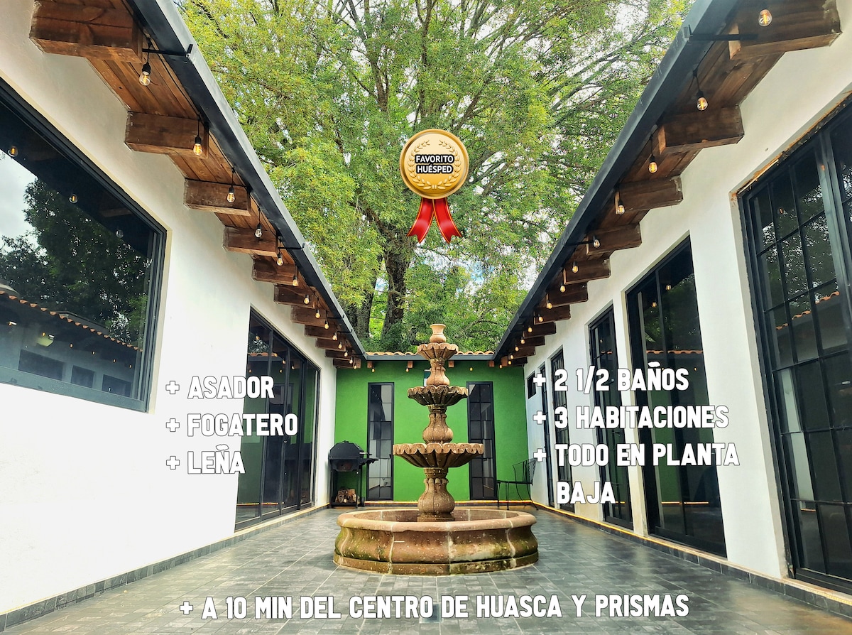 CASA DE CAMPO DE DISEÑO RUSTICO - CONTEMPORANEO, CON VISTA PANORAMICA. UBICADO A 10 MIN. CAMINANDO DEL CENTRO DE HUASCA. PUNTO CENTRICO HACIA LOS PRISMAS, LAS TRUCHAS, EL CENTRO DE HUASCA Y LA HACIENDA DE SAN MIGUEL REGLA DISFRUTA UN DIA DE RELAX EN MEDIO DE LA NATURALEZA, ASANDO CARNE, JUGANDO PIN-PON, CONVIVIENDO CON TUS AMIGOS AL EXTERIOR EN LA FOGATA O AL INTERIOR EN LA CHIMENEA. TE OFRECE WIFI- TV SKY - AGUA CALIENTE - COCINA EQUIPADA-RAMPAS PARA CAP. DIFERENTES - PET FRIENDLY AL EXTERIOR.