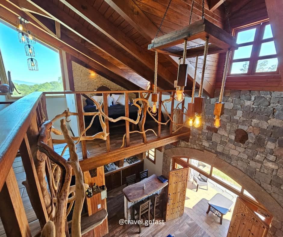 Villa Cuarzo Amarillo es una experiencia de lujo dentro del bosque. Todos sus acabados son de madera de primera y tiene muchos detalles de los que quedarás encantado. Las 3 raíces centrales que sirven de candil son únicas en todo Huasca. En todo momento te sentirás dentro del bosque por sus cristales de más de 3 metros. Las 3 recámaras tienen colchones de primera. El terreno tiene 12 mil metros cuadrados con árboles de ocote y encino. La terraza exterior es muy acogedora. Petfriendly