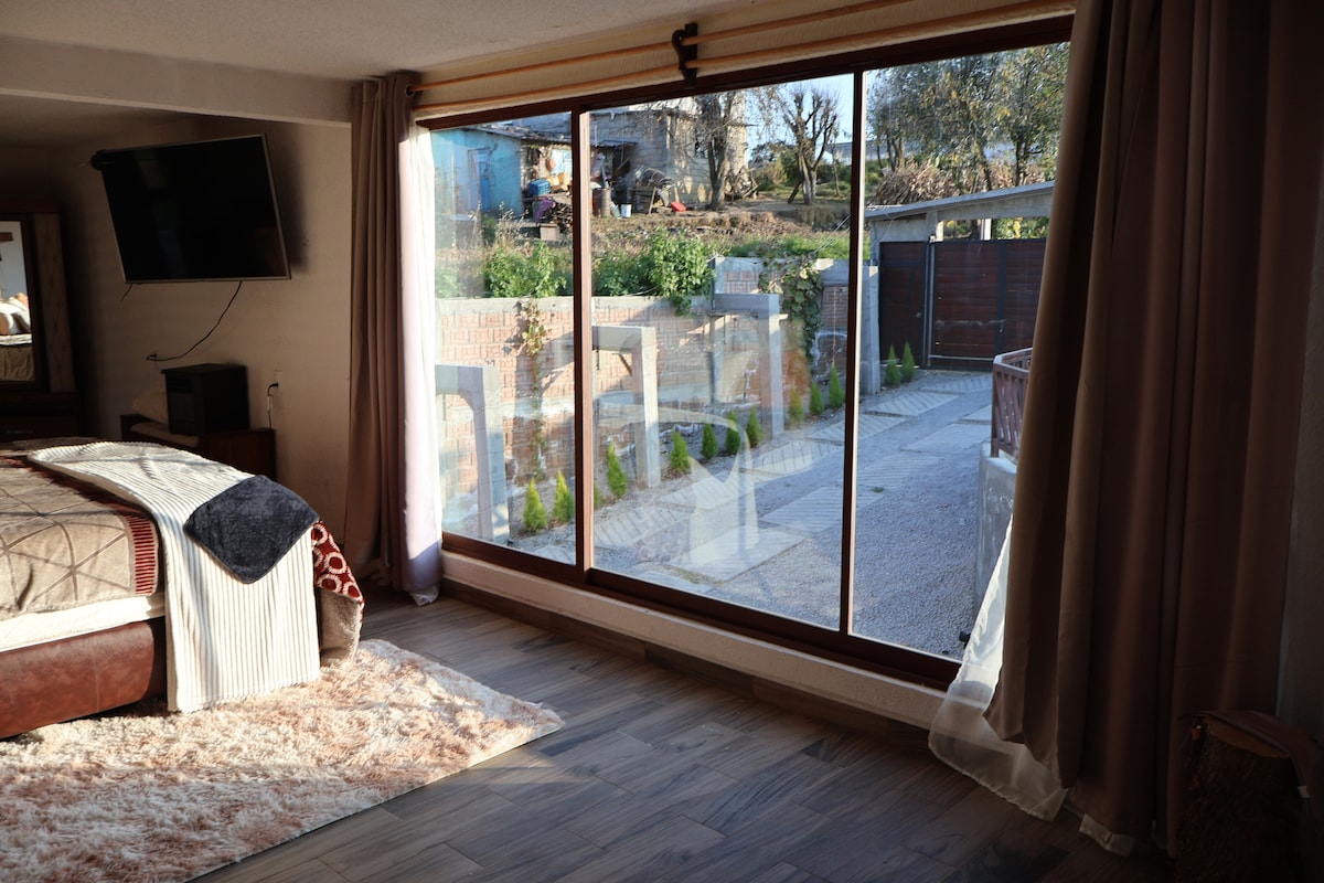 Disfruta de una estancia tranquila en un espacio acogedor rodeado de un hermoso jardin que crea un ambiente de paz y descanso. El lugar cuenta con una vista privilegiada al Nevado de Toluca, ideal para relajarte y conectar con la naturaleza. La habitación está diseñada para brindar comodidad, perfecta para una escapada de descanso, una visita de fin de semana o simplemente para disfrutar de la tranquilidad y los paisajes de la zona. Ubicado a 4 cuadras del Instituto Nacional de Migración.