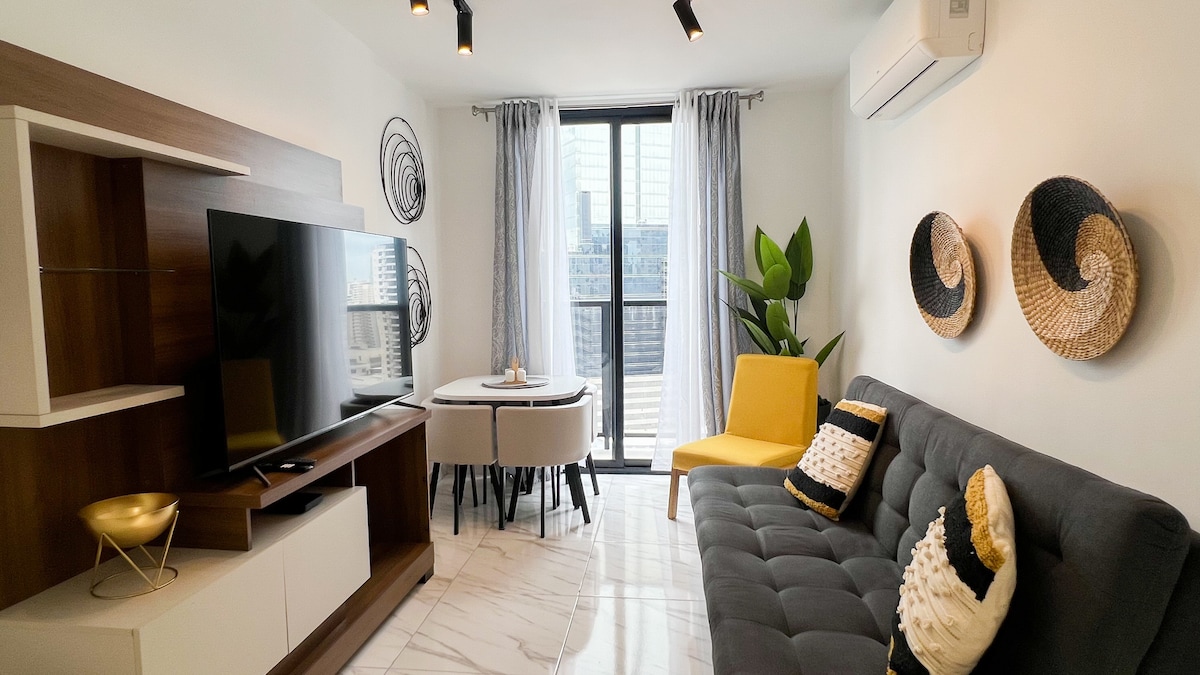 Disfruta de este lujoso apartamento, perfecto para quienes buscan comodidad y estilo, un espacio moderno y bien equipado, con todo lo necesario para una estancia inolvidable, en un exclusivo complex con amenidades exclusivas como piscina infinita, coworking, pet shower Situado en una ubicación céntrica, estarás a pocos pasos de restaurantes, tiendas y atracciones locales. Disfruta de la vibrante vida urbana y todo lo que la ciudad tiene para ofrecer.