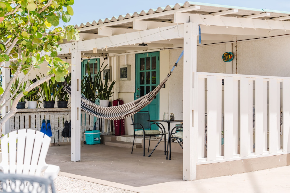 A Warm Bon Bini to 'Sweet Caroline', a spacious one bedroom located off the beaten path right past the landmark 'Lourdes Grotto’ in the middle of nature and tranquility in San Nicolas. Guests will enjoy AC in living room and bedroom, full kitchen and the comforts of a king size bed in separate bedroom, en-suite bathroom, sofa bed and TV in living room and WiFi on the property. A lazy hammock on the back patio will allow to kick back and chill in the fresh breeze. Pool access at the back.