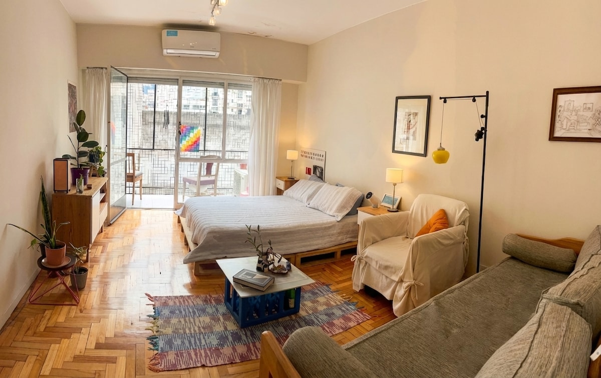 Hermoso estudio de diseño totalmente reciclado y equipado a nuevo con una vista única de las antiguas cúpulas de la ciudad. Situado en el centro antiguo de Buenos Aires, zona de gran patrimonio histórico, cultural, arquitectónico y a tan solo 300 metros del Obelisco, el alojamiento es ideal para quienes viajan por turismo o trabajo. Al estar en una zona céntrica y tener conexión con los principales medios de transporte, es ideal para recorrer los principales puntos turísticos de la ciudad.