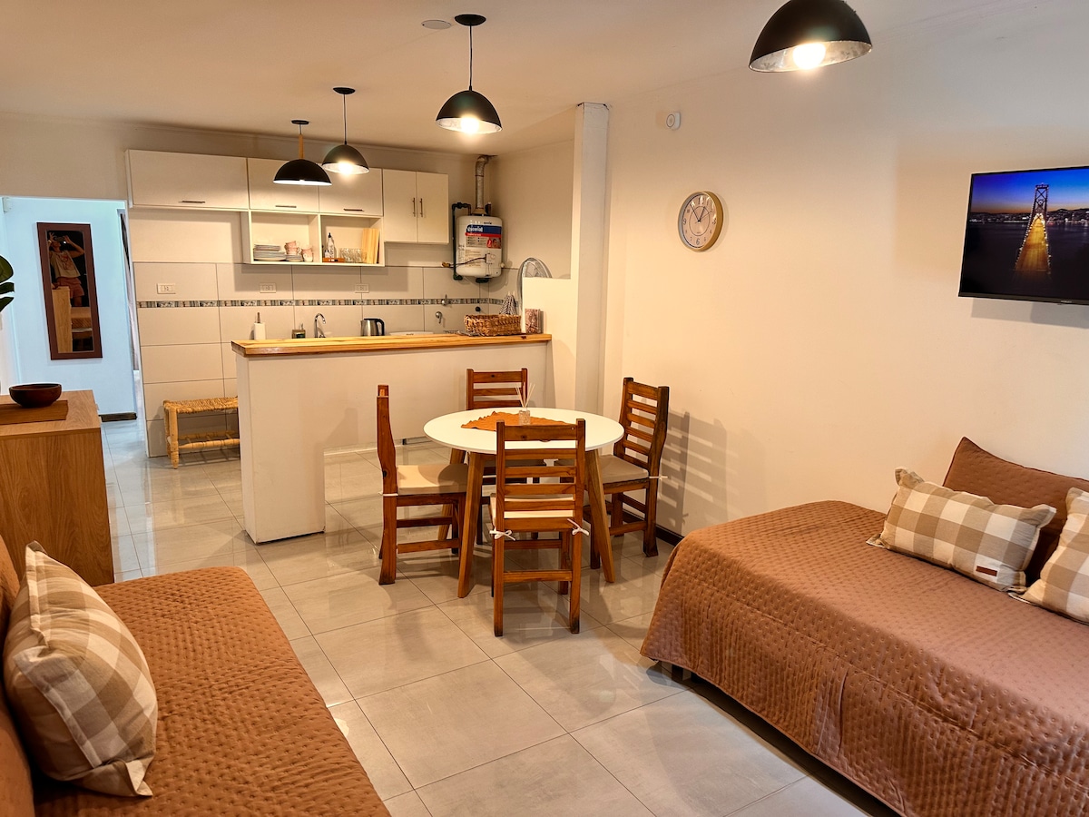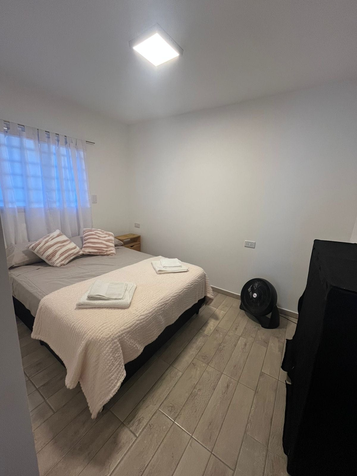 Disfrutá de la comodidad de este alojamiento a pocas cuadras del microcentro, ideal para viajes de trabajo, escapadas en pareja o pasar unos días a conocer la ciudad. El espacio cuenta con: • 🛏️ Habitación con cama matrimonial • 🛋️ Sofá cama en el living para huéspedes adicionales • ❄️ 2 aires acondicionados frío/calor • 🍳 Cocina equipada • 🚿 Baño y lavamanos separados • 📺 WiFi y TV • 🚗 Cochera privada y techada para autos, no camionetas grandeos