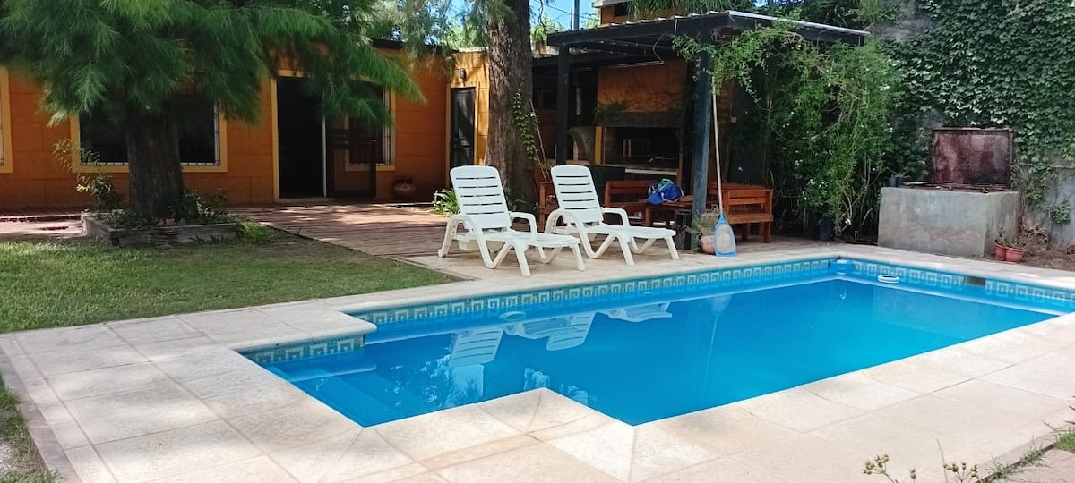 Relajate en este alojamiento único y tranquilo. Recomendable para despejarse y disfrutar la estadía con libertad, en la cercanía de campos de la zona. La soledad y el silencio en la noche es mágico , sumado al confort del lugar hacen un ambiente placentero, cuenta con alarmas que dan seguridad a la misma. Pileta disponible de octubre a abril.