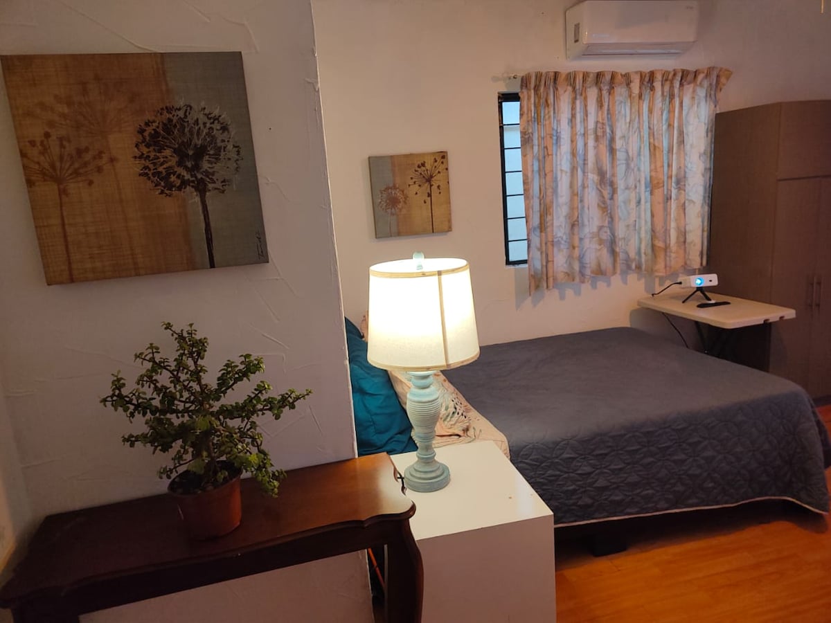 Enjoy a private, cozy and functional room in a quiet, safe area. 🏡 📍 Just 10 min from TEC, Banorte Stadium, Fundidora & downtown. 🛏️ Full bed with private bathroom ❄️ A/C hot & cold 🖥️ 32" Smart TV 💻 Desk 🍳 Electric cooktop, microwave, mini fridge & utensils 🍽️ Dining table 🚪 Independent entrance (1st floor) 🧴 Towels, shampoo & soap included