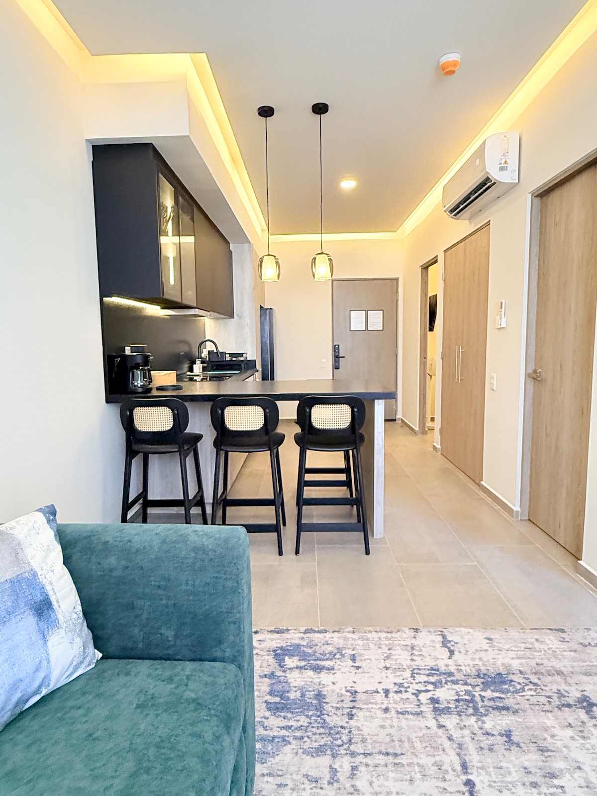 This modern apartment offers chic living spaces flooded with natural light, a fully equipped kitchen, 2 cozy bedrooms and a comfortable living area. Enjoy stunning city views from the balcony. Located in a vibrant neighborhood with cafes, restaurants, bars and shops at your doorstep, it is the perfect place to experience Monterrey City at its best, this is urban living at its finest.