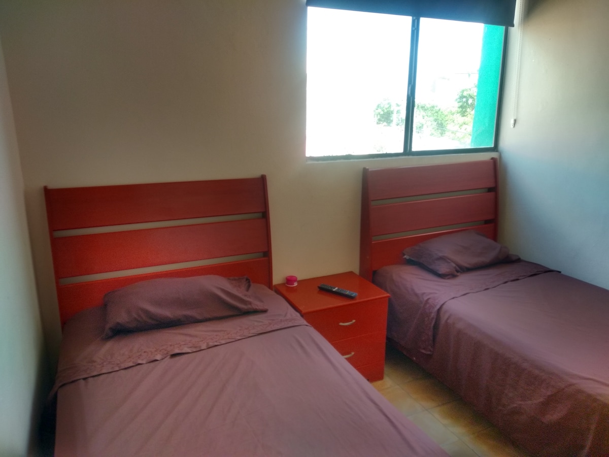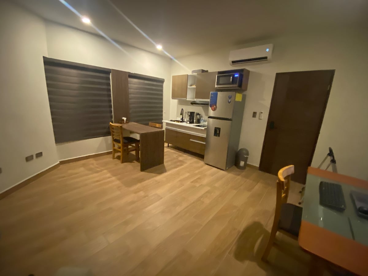 Ubicación ideal para visitar: A 4 cuadras de Cintermex (5 min caminando) A 4 cuadras de Santa Lucia A 5 cuadras Arena Monterrey A 6 min de Barrio Antiguo A 8 min de la central de autobús Dentro del Alojamiento * Cama Queen * Minisplit * Smart TV * Cama Queen * Baño privado toalla, jabón y shampoo * Café *secadora de pelo *plancha de vapor. * Wifi *VIx Acceso para huéspedes: El departamento es independiente. Los huéspedes comparten el acceso por el pasillo.