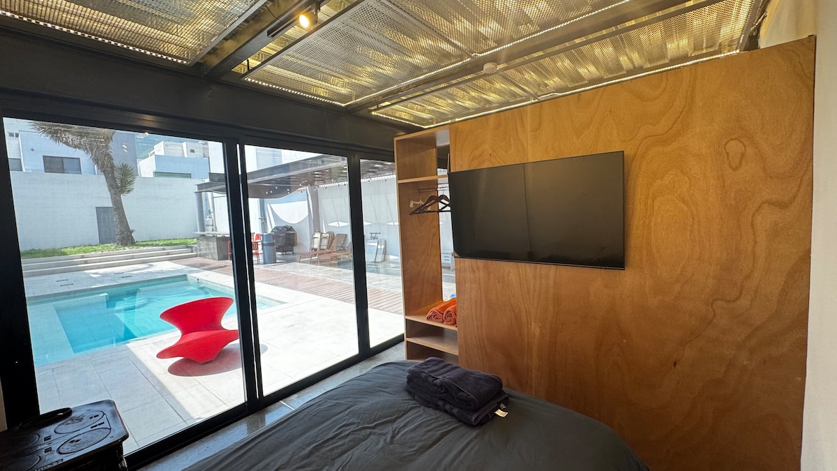 Amplio, cómodo y luminoso… ¡el lugar ideal para relajarte, descansar y disfrutar Monterrey. Lo que incluimos: -Agua potable siempre disponible 💧 -Cafe y básicos para tu estancia -Comodas camas Memory Foam y almohadas de plumón para un descanso perfecto 🛌 -Estacionamiento gratuito para 1 coche, junto a elevador -CAS a 1 cuadra -Espacio para trabajar con comodidad -TV con aplicación para películas, series y deportes