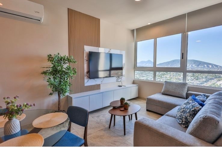 Amplio, cómodo y luminoso… ¡el lugar ideal para relajarte, descansar y disfrutar Monterrey. Lo que incluimos: -Agua potable siempre disponible 💧 -Cafe y básicos para tu estancia -Comodas camas Memory Foam y almohadas de plumón para un descanso perfecto 🛌 -Estacionamiento gratuito para 1 coche, junto a elevador -CAS a 1 cuadra -Espacio para trabajar con comodidad -TV con aplicación para películas, series y deportes
