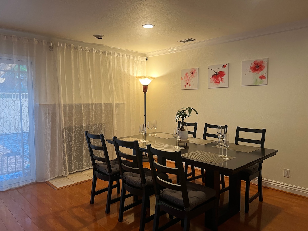 Come and enjoy this 1-bed unit. A cozy and bright bedroom with a comfy Queen bed. The living room consists a dedicated dining area and a relaxing area with sofa and TV. The kitchenette includes a microwave, a small oven and a k-cup coffee maker, but No STOVE. Newly installed heating and cooling air conditioning. This suite is a part of a single family house.The rest of the house is also rented as an Airbnb unit but with separate entrance. The deck area is shared. The entrance is in the backyard.