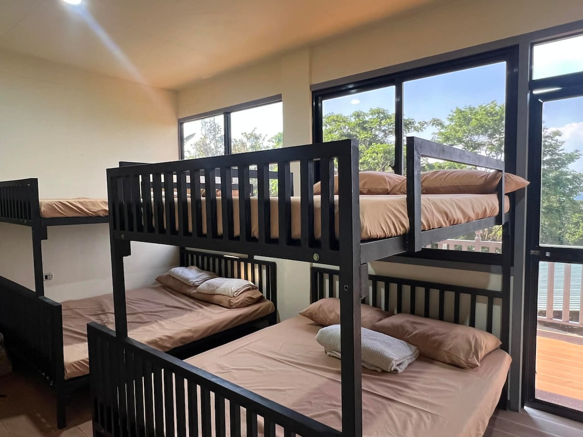 Inclusion: >>6 beds (3 double deck beds) 12 pax sleeping capacity >1 room , fully airconditioned >1 indoor toilet and shower >1 outdoor toilet and shower >Gazebo >Kitchen >Kitchen utensils and cooking wares >Fridge >BBQ Grill >Open area for events, group activities or tent pitching >Enjoyable scenic view of Taal Lake and surrounding mountains >Beautiful Landscape >Large pool with non heated jacuzzi and kiddie pool >Tables and chairs >Free parking