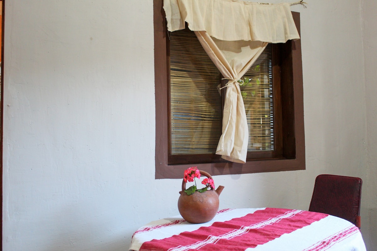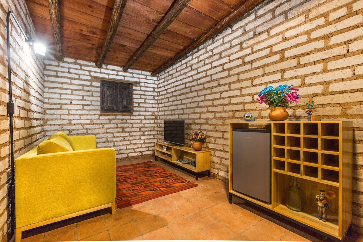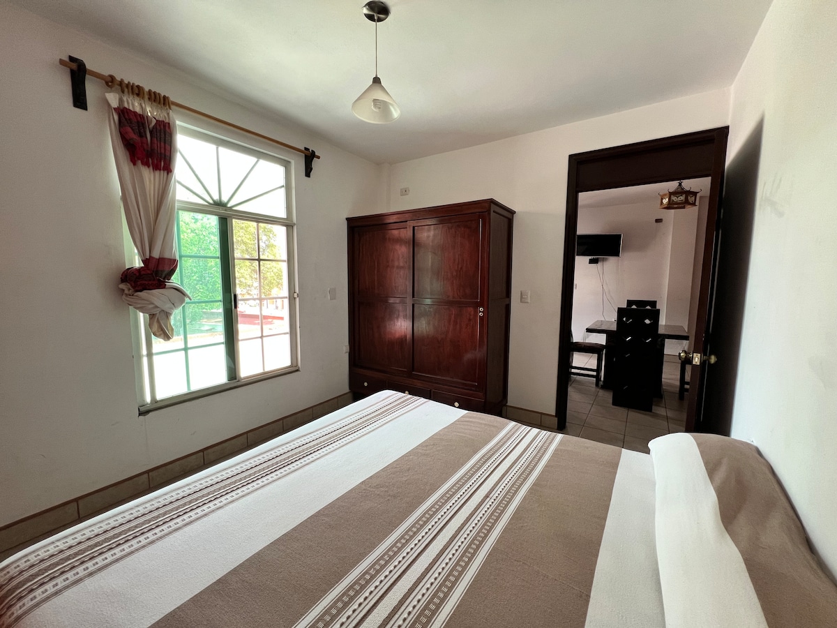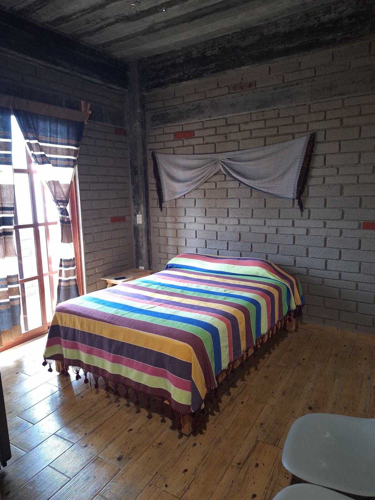 Acogedor Departamento completo, cuenta Cocina, 1 cama King Size, y 2 camas matrimoniales, baño, TV. Arte textil de la zona en cortinas y cobijas. Cuenta grandes ventanales que te permitirá disfrutar de la luz natural y la tranquilidad de este pintoresco Pueblo Mágico.
