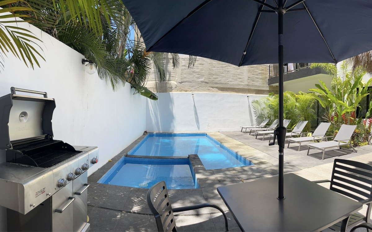It's an almost new Apartment located in a small complex with two other houses and a shared lonely pool. Nested in a quiet residential zone with easy access by golf cart or foot; very close to restaurants and 500 meters from the beach on the north side. Fiber Optics WiFi with up to 400 Mbps download speeds. * Subject to Availability (due to weddings and events): Includes free daily access to a beach club in Sayulita: AzulPitaya.