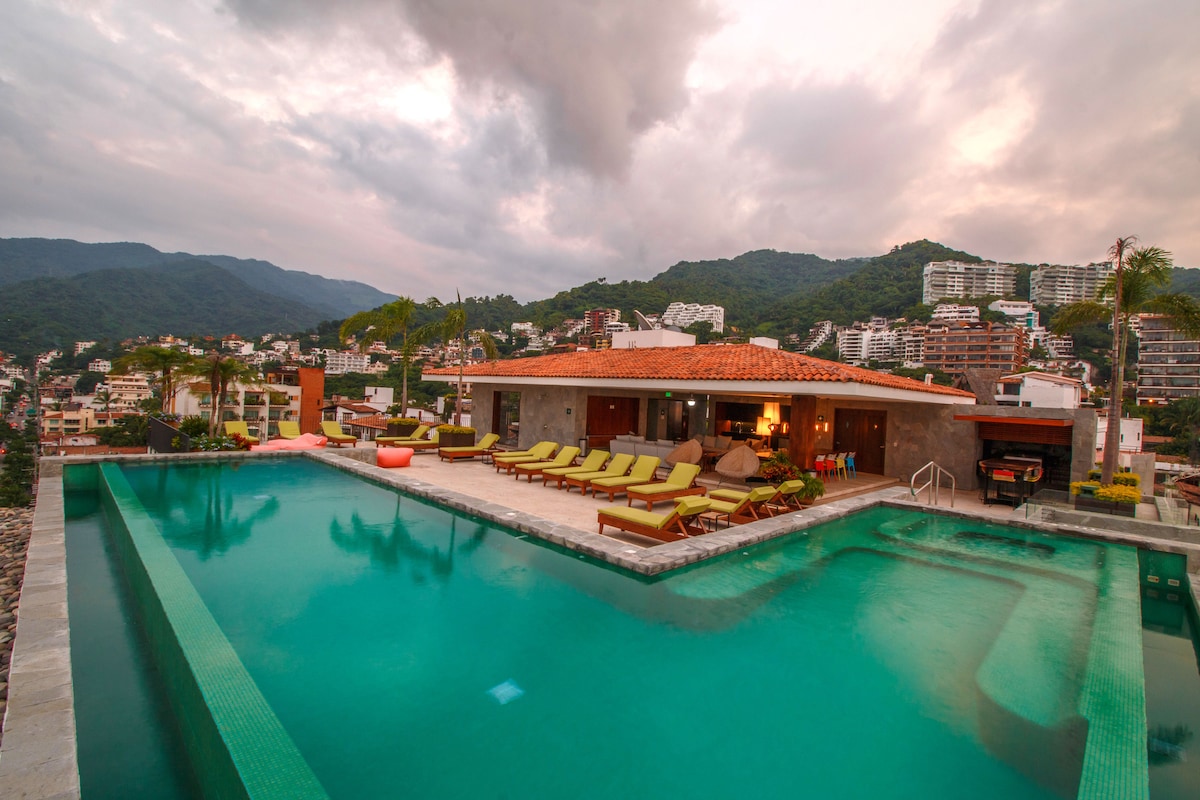 Experience modern Mexican luxury at Zapata del Mar in the exciting new SohoPV, at the ❤️ heart of the Romantic Zone. This Oaxacan inspired condo, is only 6 blocks from Los Muertos beach 🏖️ and at the center of PV’s restaurants, trendy bars, galleries & entertainment venues. Enjoy the iconic rooftop infinity pool 🌊with panoramic views or unwind on your large private balcony with city & ocean views. Building amenities include sun beds, cabanas, lounges, fire pit, gym, rooftop infinity pool and bar.