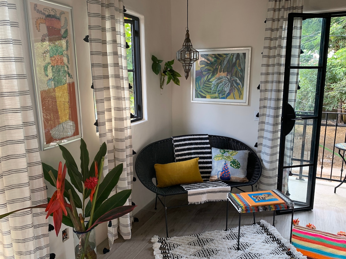 Our newly built studio apartment sits atop a tropical garden and an art studio. Relax on the balcony and absorb the tranquilo vibes of small town Mexico. Come and go through you own entrance and kick back in the lower patio. Our place is next to some of our towns coolest cafes and cervecerias and just two blocks from the beach.