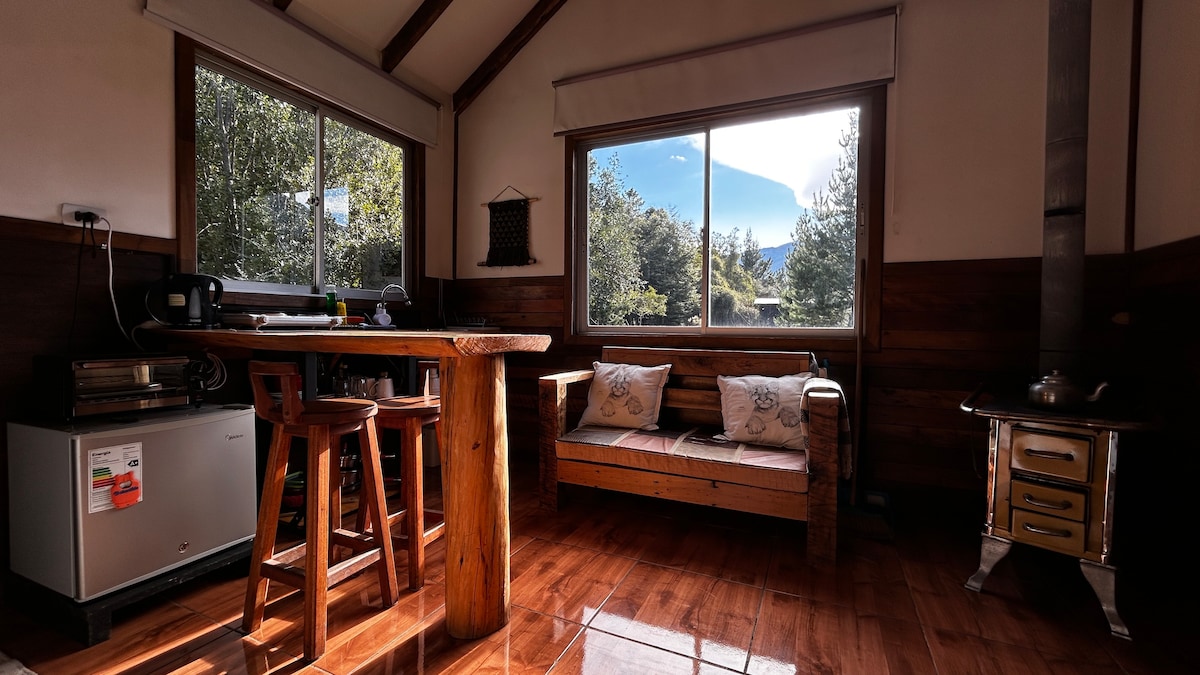 Lefuco Lodge te invita a relajarte en esta escapada única, disfruta de la naturaleza en un entorno tranquilo para disfrutar en pareja y desconectarte. A sólo 11 km de Curacautín hacia el parque nacional Conguillio y a 16km. del acceso al parque, sector rural seguro. La cabaña cuenta con servicio de tinaja exclusiva y su uso tiene un costo adicional de $30.000 (reserva con 1 día de anticipación) y su uso es contínuo de 6 a 8 horas.
