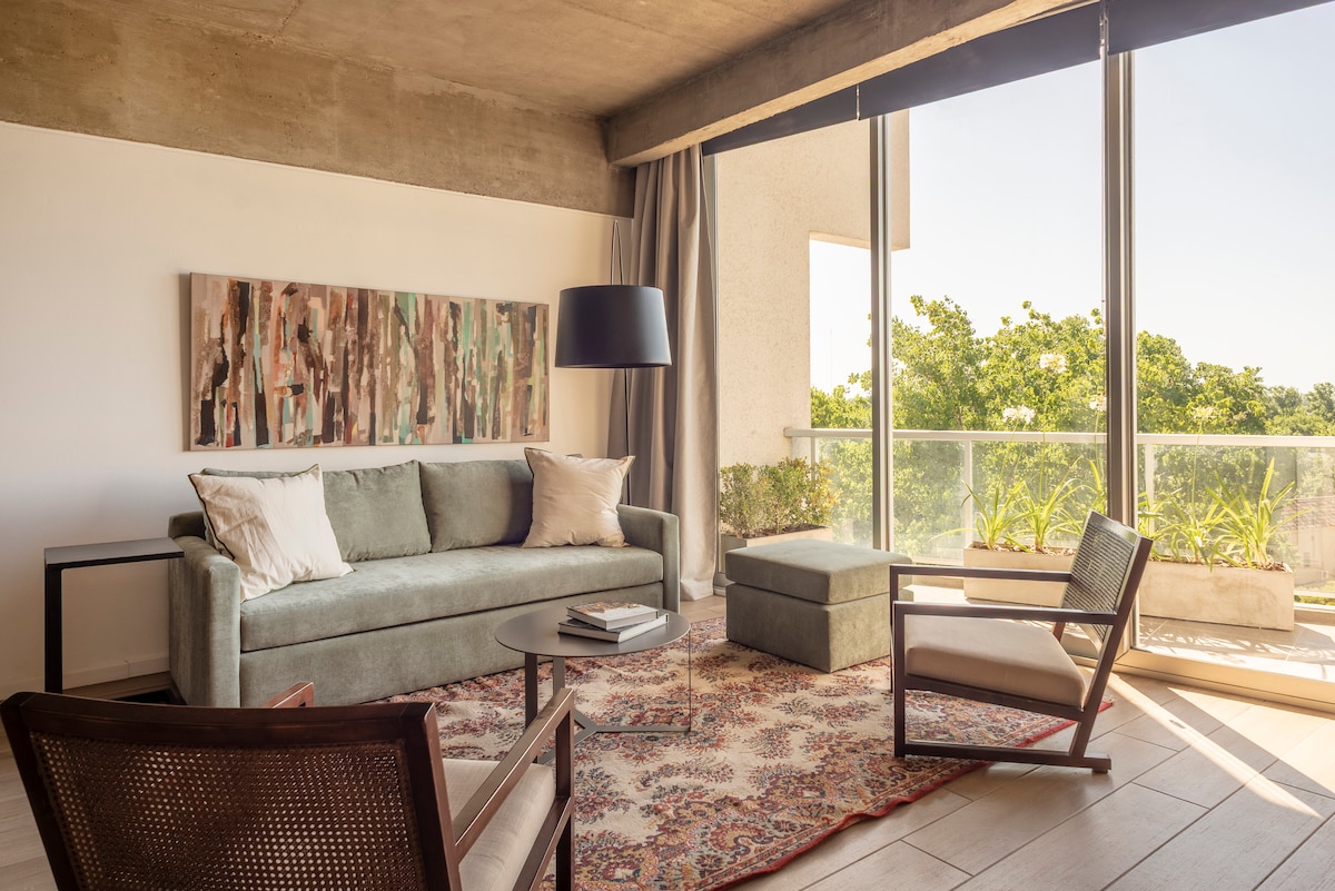 The residential complex Campus Vista has 24-7 private security, a sauna, a heated indoor pool, outdoor pool, fully equipped gym, fire pit, terrace with panoramic views, covered parking spot. It features: queen bed, sofa bed, spacious private terrace with a fire pit with a grill, a covered parking spot. Immerse yourself in a relaxing experience located in Pilar, in front of the Austral Campus and 300 meters from its entrance. It's an 8' walk or a 2' drive to the IAE and Hospital Austral.