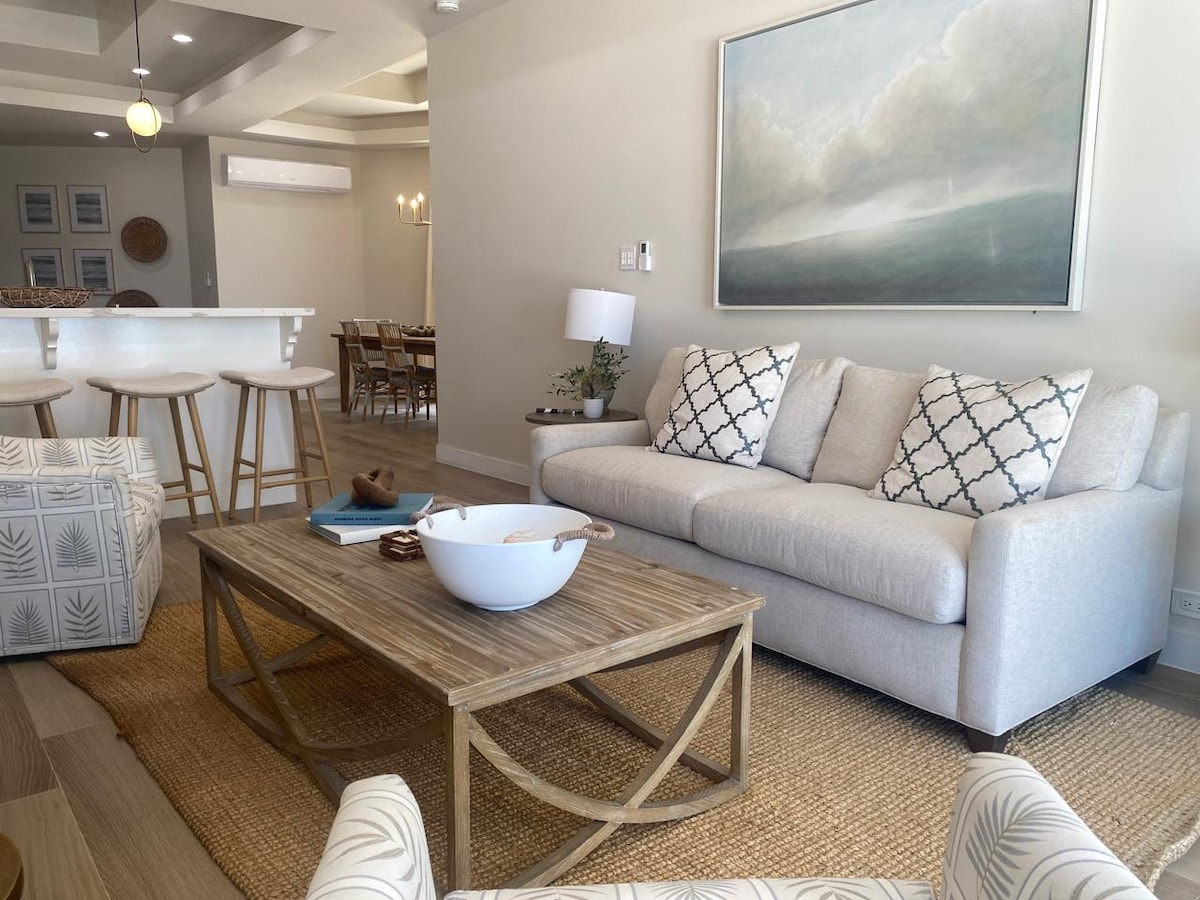 Escape to your dream beachfront condo! This 2-bed, 2-bath residence boasts stunning views of the Caribbean Sea and offers the ultimate comfort and relaxation. As you enter the open and spacious living area, you'll be greeted by plush sofas and chairs, a smart TV, and large arched windows with panoramic views of the beach and sea. The fully equipped kitchen features modern appliances, sleek countertops, and plenty of space, making it the perfect place to prepare delicious meals.
