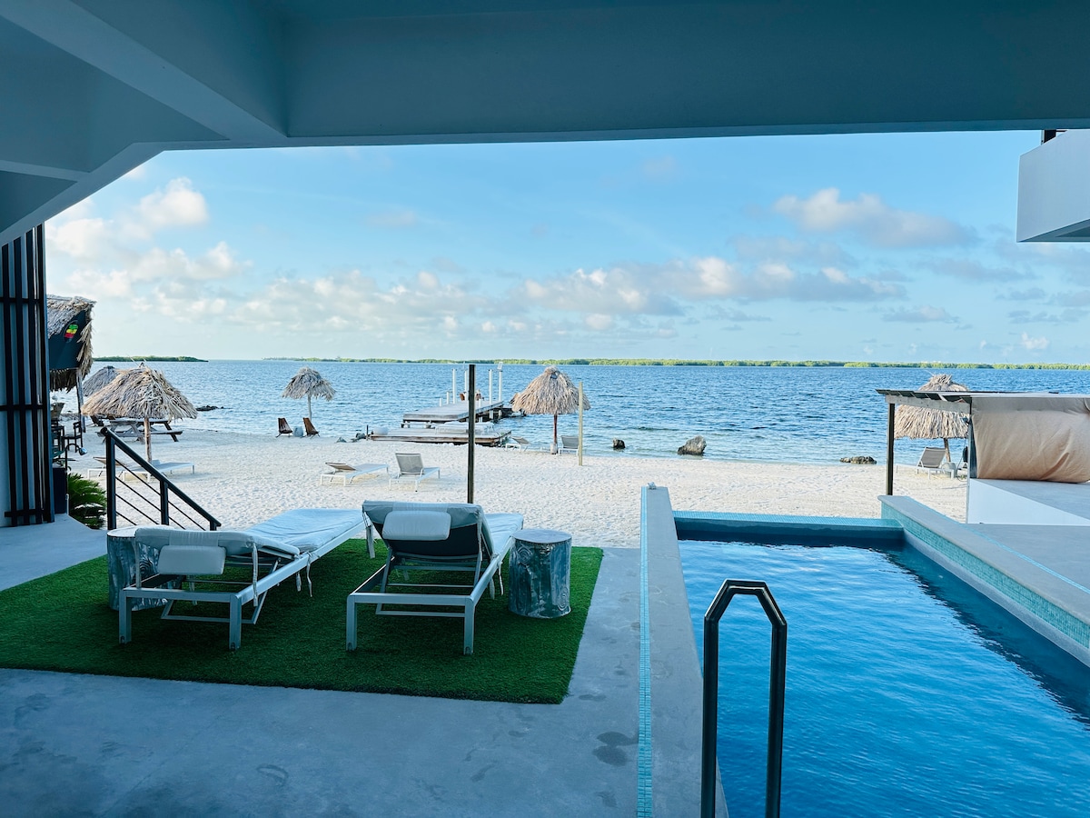Stay at the only adults-only, boutique cabana experience in Ambergris Caye! PUR Boutique Cabanas offers a modern yet vintage, rustic-luxury experience, with a Taco Bar & swim up pool bar, in the BEST neighborhood in Ambergris Caye, a mile north of the bridge. We offer amenities of a boutique hotel including complimentary airport or water taxi pick up (one round trip), complimentary coffee and water, bathrobes, beach towels, onsite concierge, complimentary bikes, welcome drink, king units & more!