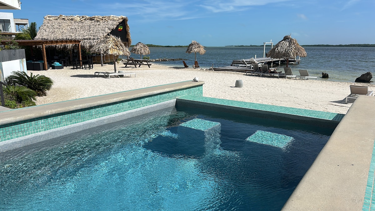We are located at Secret Beach on Ambergris Caye, we designed and built the resort to be off the grid but still provide amenities like a/c, wifi, smart tv, ceiling fans, safety deposit box, that make the comforts of off the grid living even better! We are a 30 minute golf cart ride from the town of San Pedro on the west side of the island. Secret Beach now has about 10 bars/restaurants which are all just a short 10 minute beach walk away or 2 minute golf cart ride. Add guest access