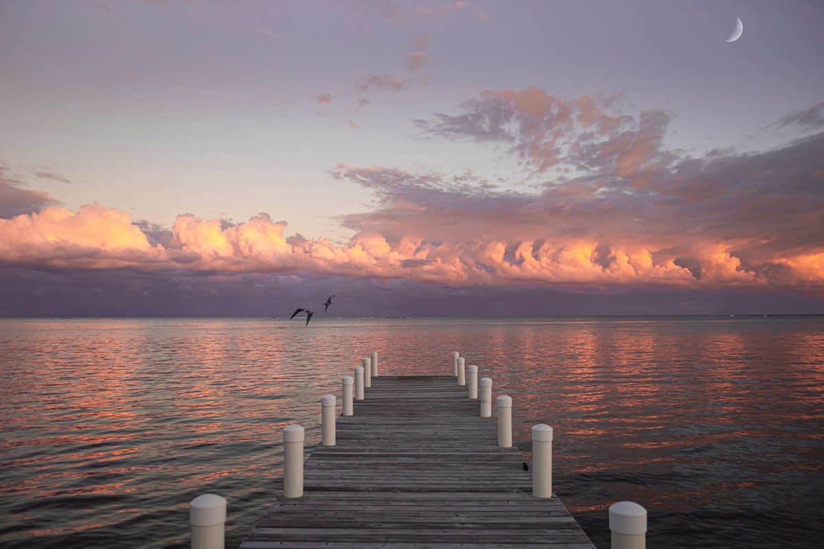 The overwater cabana features glass floor openings in every room. A full length patio deck equipped w/ a private plunge poo, swings, and hammocks. A full kitchen and living room combo with views of beautiful ocean. Every room has wifi, cable, AC, king beds resting upon Belizean hardwood furnishings, and pull out mattresses available upon request. Room service available and a continental breakfast is included. 5 minutes away from downtown San Pedro. Experience overwater