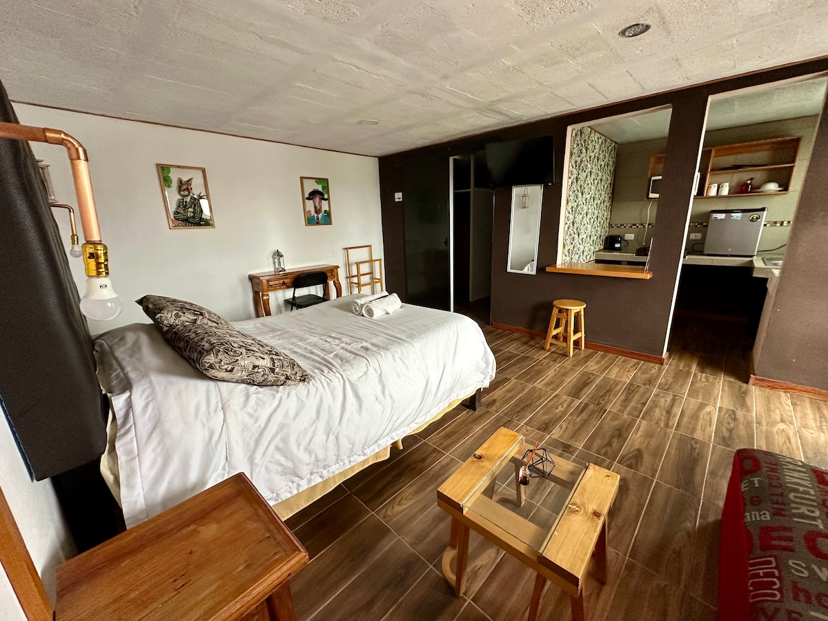 Loft individual en jardín con amplia vegetación para escapar un momento de la ciudad, ubicada en San Andrés Cholula a 10 minutos a pie del centro y 15 de la zona arqueológica (Pirámide de Cholula). Cuenta con WIFI, cocina con estufa, microondas, refrigerador y baño privado, cama matrimonial, incluye sofá de dos piezas y espacio para trabajar. Incluye estacionamiento dentro de la propiedad.