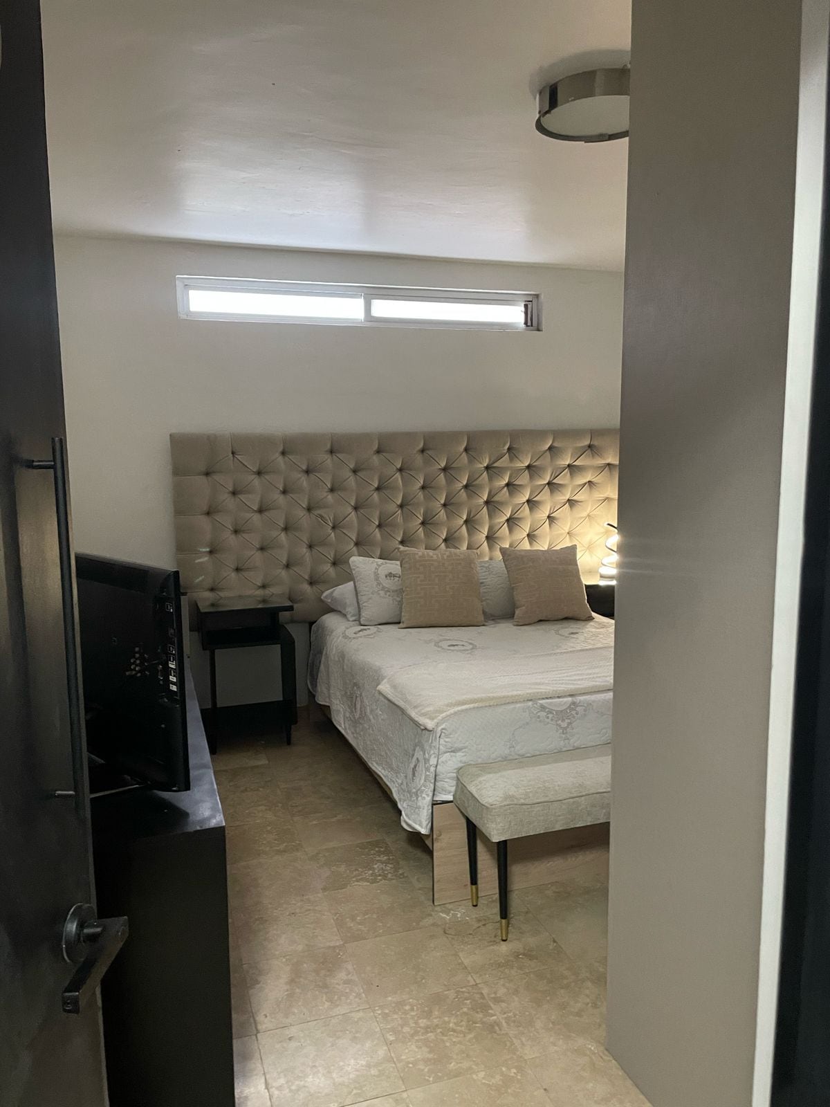 Encantador departamento estilo Vintage en hermosa zona de Cholula muy cerca del centro y del Cerro Zapotecas, 90 m2 mas terraza privada, Cuenta con sala, comedor, cocina integral abierta a la zona social, cuarto de lavado equipado con lava-secadora, baño y una amplia recamara con vestidor amueblada con smart TV, escritorio de trabajo, sillón de descanso y cama King Size. El condominio cuenta con bicicletas que podrás tomar y disfrutar un encantador paseo por los alrededores. Facebook @deck105