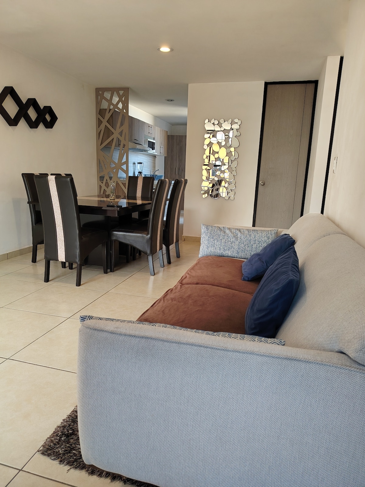 Disfruta este departamento moderno, seguro y perfectamente ubicado, en planta baja combina confort, diseño y una tranquilidad inigualable, dentro de un fraccionamiento residencial con alberca, gimnasio y seguridad 24/7. Cerca de todo y lejos del ruido. Ubicación privilegiada para moverte por toda la ciudad: UDLAP 8 min Cholula Centro y Pirámide 10 min Zona Angelópolis 20 min Estrella de Puebla 20 Para familias, parejas, viajeros de trabajo que buscan una estancia tranquila cómoda y segura.