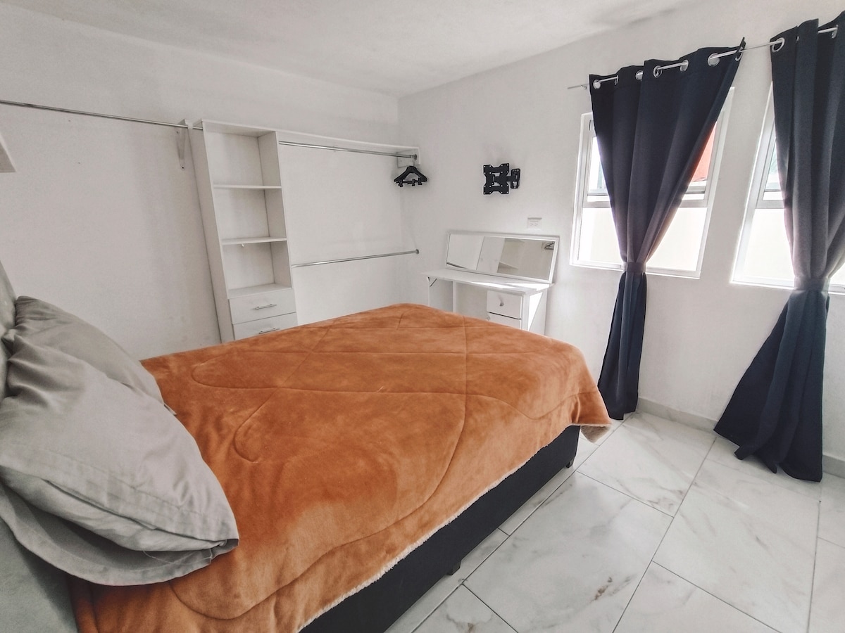 Habitacion con dos camas matrimoniales el precio es por 2 personas pero pueden estar muy bien 4 personas. Minimalista, bien iluminado con estacionamiento, a 200 metros de la piramide, y zócalo con zona de restaurantes, centros de diversión, todo a unos pasos. no tiene cocina sin embargo tiene acceso a área común de comedor donde puedes guardar alimentos en refrigerador y calentar en microondas.