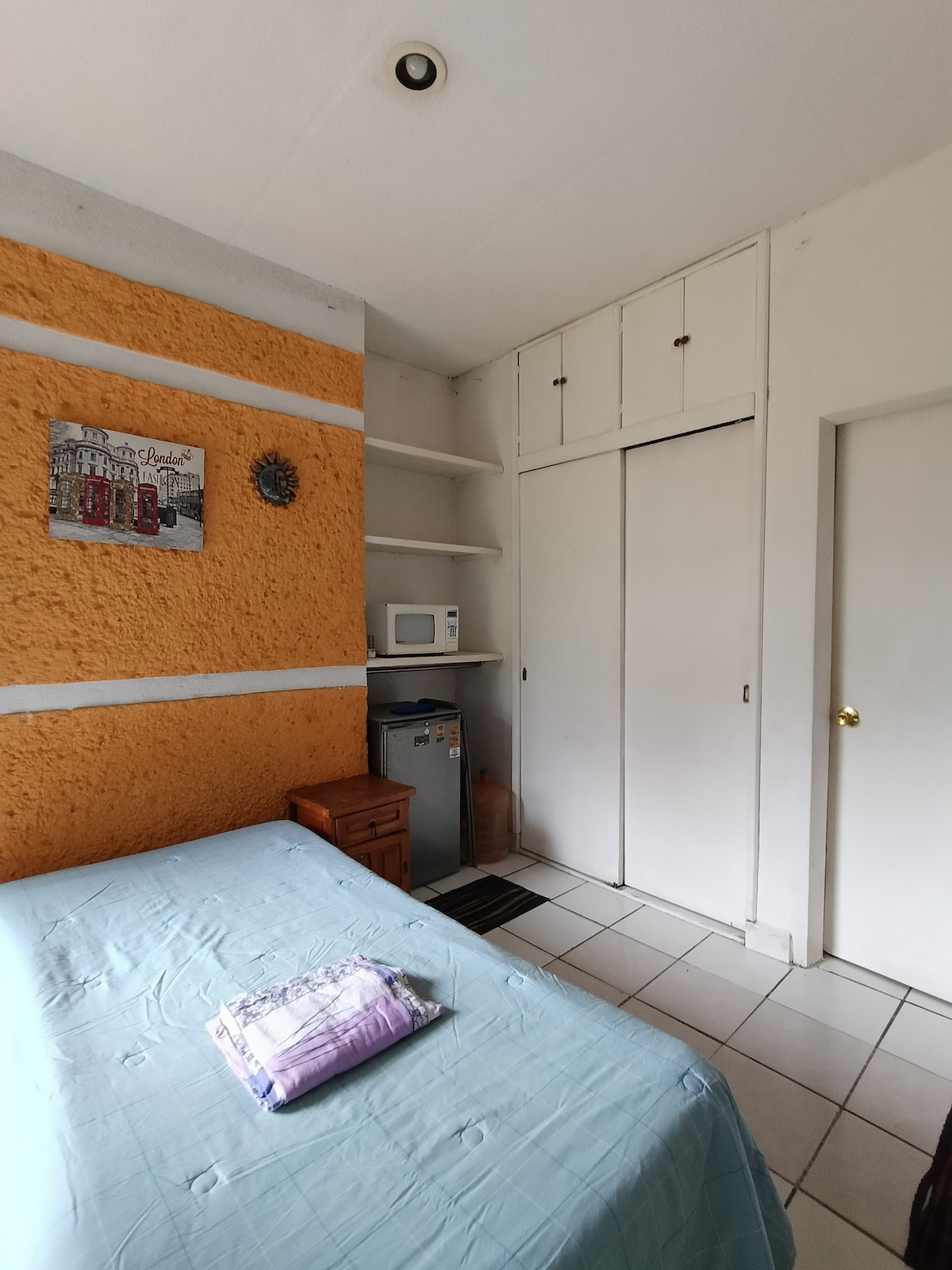 Cuarto habitación totalmente independiente Se encuentra amueblado Incluye la cama el frigobar y horno de microondas Se encuentra dentro de un fraccionamiento totalmente seguro y con tranquilidad Incluye los servicios de agua luz internet gas Netflix Acceso a las áreas verdes que son las canchas de fútbol de tenis Cuenta con una zona para eventos con baños independientes Seguridad garantizada