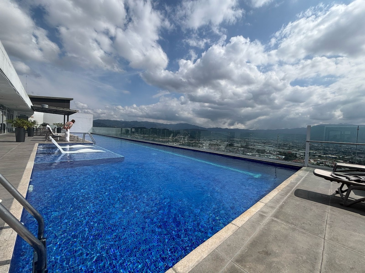 New Studio Apartment in a Brand New High Rise Building. Great location, Walk Score of 90 ("Walker's Paradise Daily errands do not require a car.") Queen size bed, couch, 50 inch smart TV. The building has every ammenity you could wish Rooftop pool, Movie Room, iWork area, coWork Area, Game Room, Gym, Landry Room, Art Room and many many more. Very close to Super Market (Automercado), Coffee Shops Just 11 minute bus ride to Downtown San José Or Just $3 Uber ride to Downtown San José