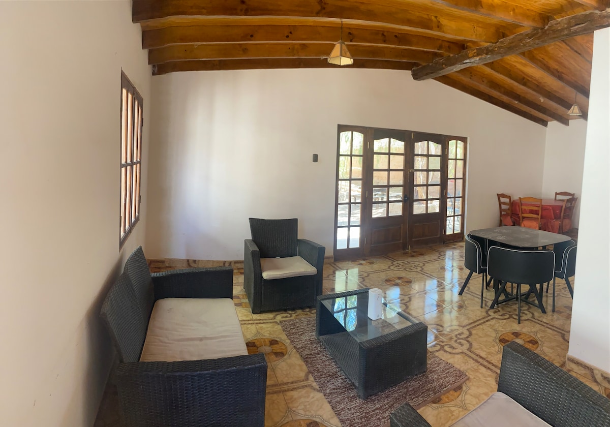 es una casa de ambiente familiar queda ubicado a 10 min en vehículo hacia el pueblo,donde podras apresiar una naturaleza increíble con una vista a nuestro majestuso volcan licancabur y juriques. dispone de vehículo toyota 4 runner 4x4 capacidad 7 pasajeros .. el valor incluye el vehículo..así,podrán apreciar a su tiempo los mejores paisajes y lugares de nuestro desierto querido!..