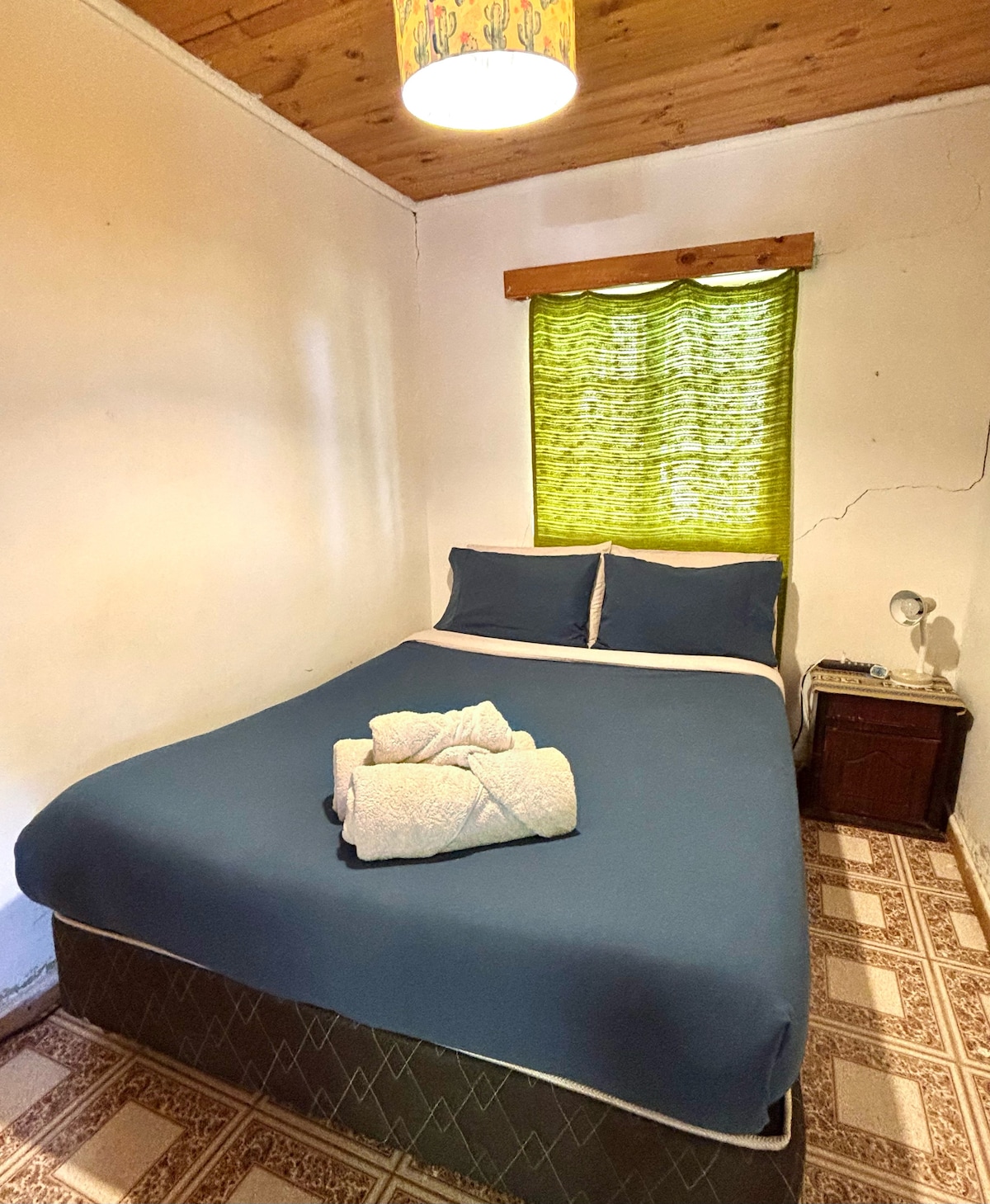 "Refugio de Paz" es un oasis de tranquilidad en el desierto de Atacama. Ofrece un entorno acogedor y único para escapar del estrés. Está rodeado de naturaleza impresionante, con vistas panorámicas del desierto y sus montañas. Alojamiento: - Cama de dos plazas - Refrigerador y cocina equipada - Microondas y freidora de aire - Utensilios y equipo de cocina - Baño, ducha, agua caliente - Directv - Mini terraza y estacionamiento Ven y descubre este lindo refugio a 4 kms de San Pedro de Atacama.