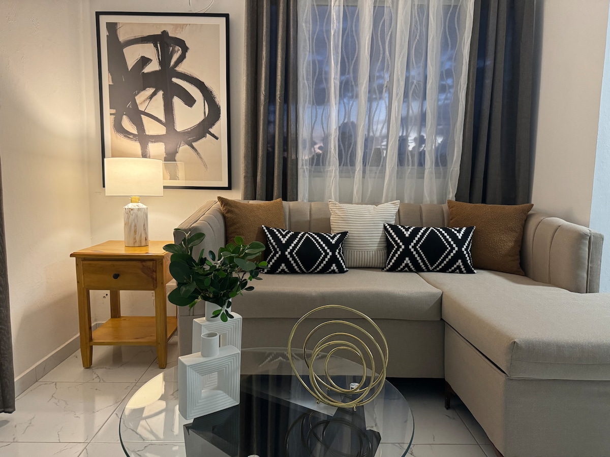 Vive la experiencia de un espacio moderno y céntrico, a solo dos calles del Estadio Tetelo Vargas y supermercados locales y a 15 minutos de las hermosas playas de Juan Dolio. El apartamento ofrece aire acondicionado tanto en la sala como en el dormitorio, que cuenta con una cómoda cama king size, mientras que la sala dispone de un sofá cama full. Además, disfrutarás de Wi-Fi, una cocina totalmente equipada y un área de lavado, diseñado para que tengas una estadía cómoda e inolvidable.