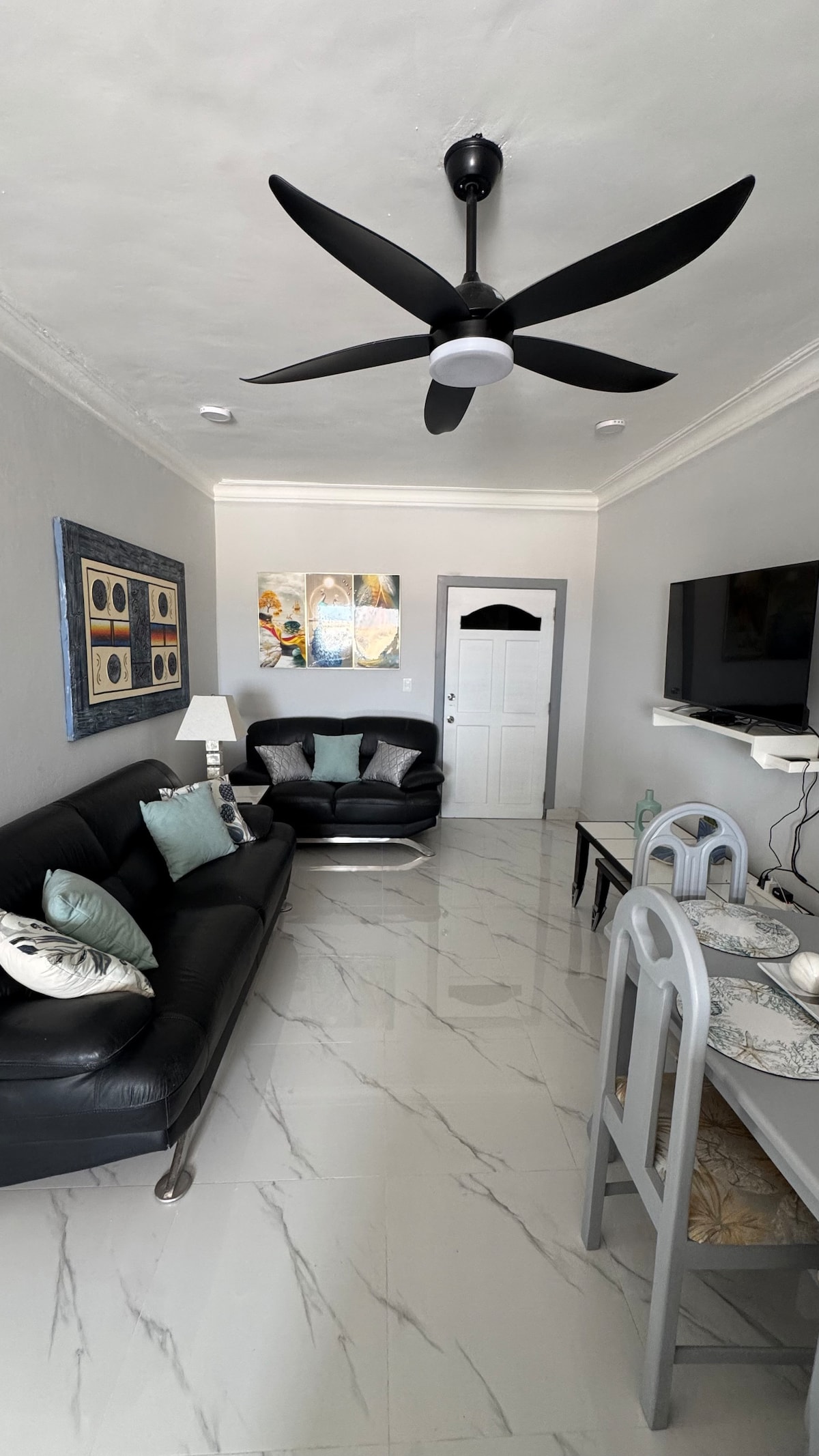 🏝️ Welcome to Malecón SPM Your private Caribbean getaway, just one block from the iconic San Pedro Seawall (El Malecón). Enjoy the vibrant atmosphere with restaurants, bars, food parks, and nightlife all within walking distance—plus the best sunsets in the Dominican Republic 🌅. This apartment offers the perfect mix of comfort and privacy, featuring a spacious bedroom and a dedicated workspace for remote work or leisure.