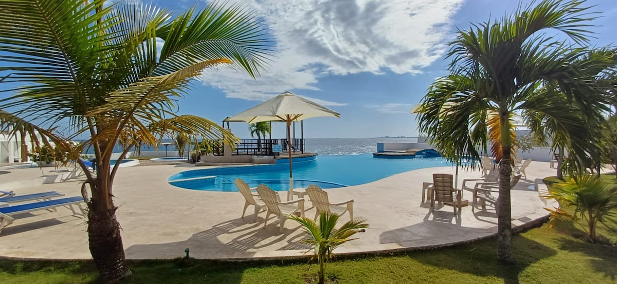 Imagine having a hotel Suite with all the integrated services of an apartment, the space lends itself to a low cost romantic escape, where you have a kitchen and a large private bathroom but also all the services of a hotel, a large balcony to enjoy an evening with an impressive view of the sea and the warm breezes of the Caribbean. Sauna, Gym pool and a quiet beach. You can request a reservation for a relaxing massage to end your dream vacations.