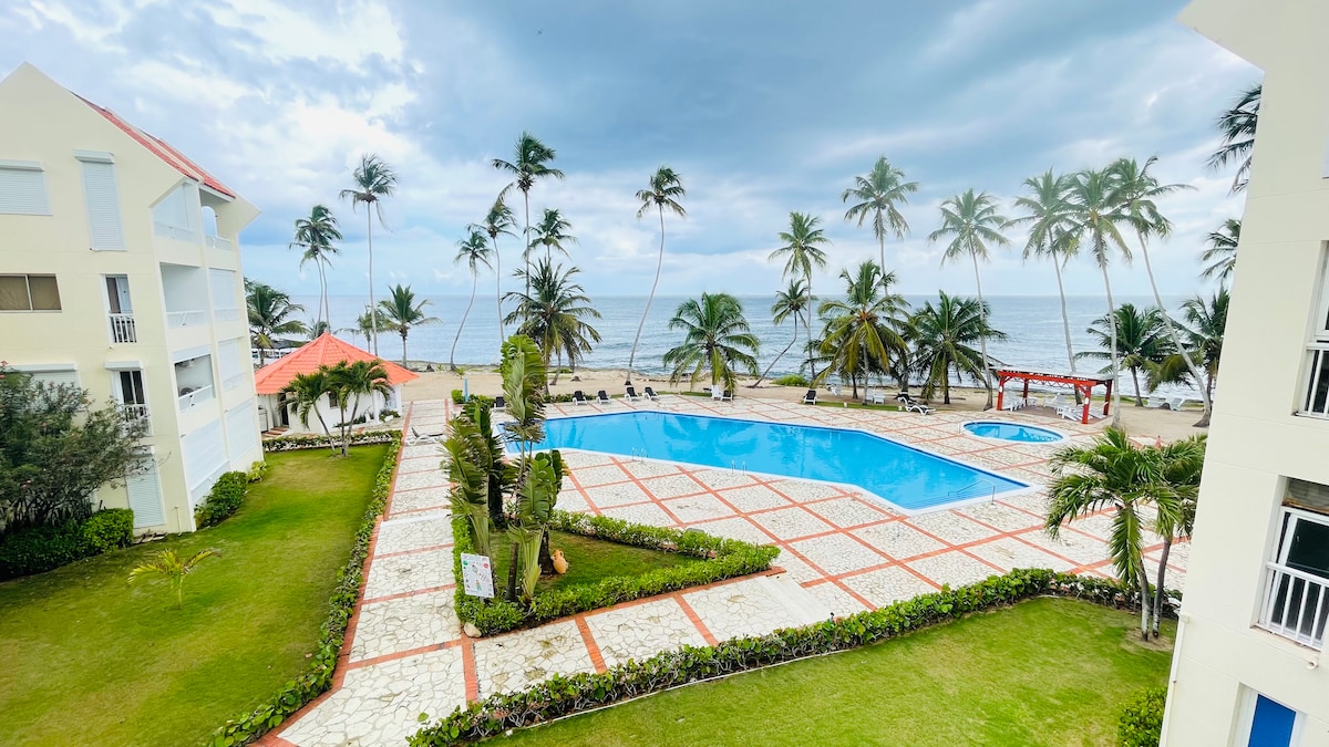 Hermoso apto de dos habitaciones completamente amueblado. Habitacion principal con una hermosa vista a la piscina y acceso al balcón, cama king, closet y baño privado. Segunda habitacion con vista a la playa, cama queen, y cama Doble closet y baño privado. Cocina totalmente equipada con todo lo que necesitas para tu estadía. Sala de estar completamente amueblada, aire central, 65" Smart TV, WiFi de Alta velocidad, Lavadora, secadora y más. Balcón con hermosa vista hacia la piscina y áreas verdes