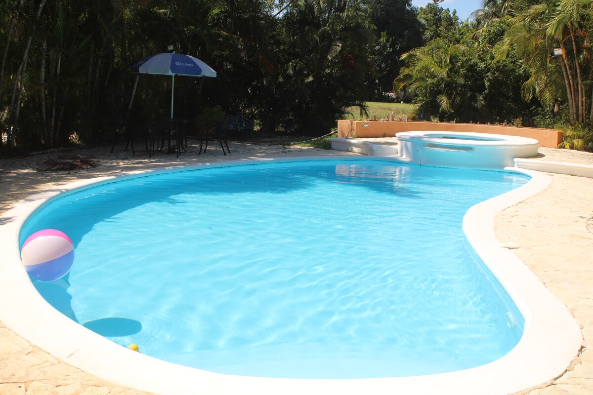 KING BEDS! -Available Air Mattress for additional Guests. CHEF AVAILABLE! ($125 per day) (BREAKFAST LUNCH AND DINNER) -Groceries Not Included- 25 Min From Airport (SDQ) *Must send Guest List before Check in * SWIMMING POOL, JACUZZI. PROFESSIONALLY CARED GRASS. BBQ, POOL TABLE. *IN FRONT OF THE GOLF COURSE* BEACH (1 min Drive) From Club entrance SPEAKERS, CHAIRS, TABLES WE PROVIDE IT! -For additional Fee (Birthdays Parties , Special Events, Buffet, fee for Additional Guests, Djs)
