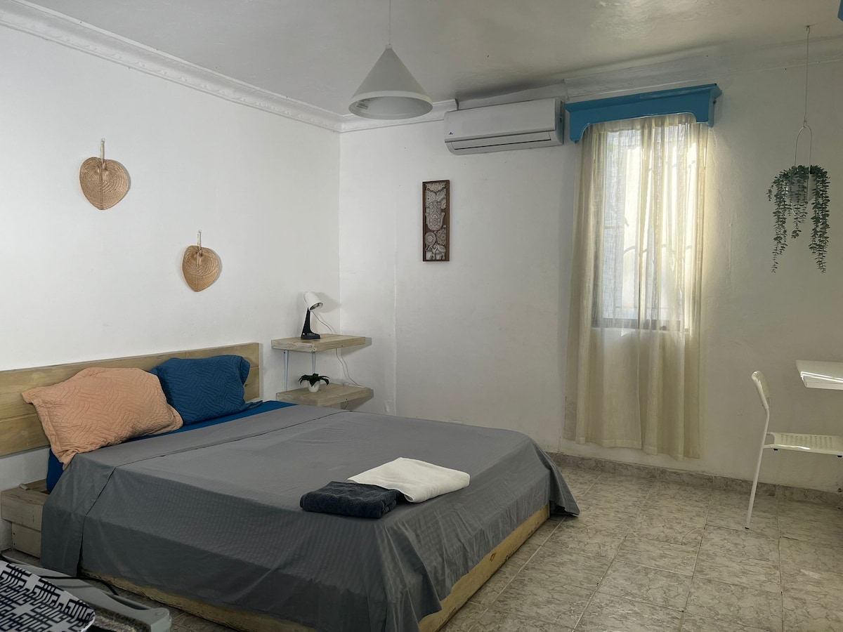 Habitación acogedora y tranquila ubicada en nuestro aparta-hotel frente a la playa de Juan Dolio, diseñada para un descanso relajante. Cuenta con aire acondicionado y WiFi, ofreciendo un ambiente cómodo y funcional. Ideal para familias, parejas o grupos de amigos que buscan privacidad, confort y una ubicación privilegiada frente al mar, con fácil acceso a la playa y espacios pensados para disfrutar una estadía agradable y sin complicaciones.