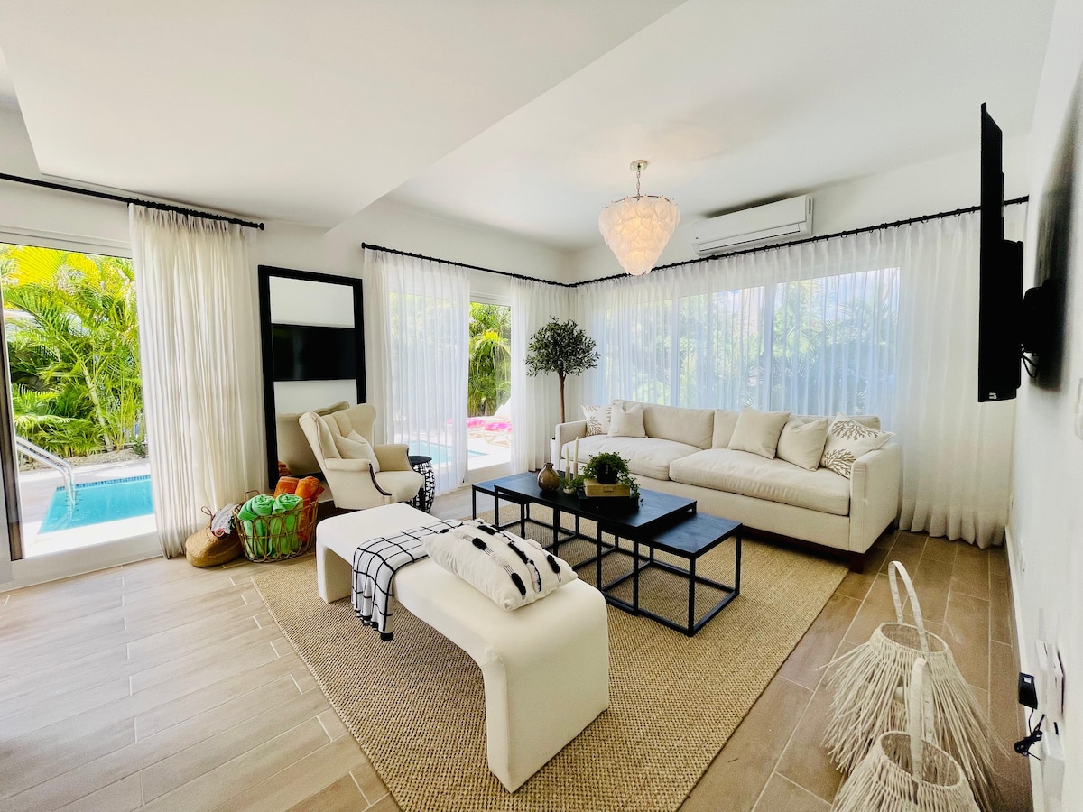 Modern 3BR villa with private pool & beach club access in Playa Nueva Romana. Welcome to Villa La Perla Blanca-Your Private Tropical Escape Step into modern luxury at Villa La Perla Blanca,where comfort meets style in the heart of paradise. This stunning villa features a private swimming pool ,and a lush garden that ensures total privacy .Whether you are enjoying a morning coffe on the terrace or a sunset cocktail by the pool, every moment here feels special