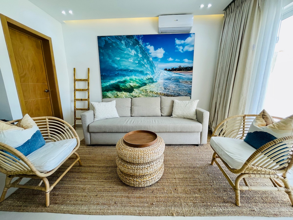 This fully equipped apartment is located in a tourist condominium provided with all the amenities: swimming pool, terrace, children's area, gym, elevators, ample parking, etc. and it is located in the best area of ​​Juan Dolio, with the beach, bars, restaurants, banks and mini markets less than 2 minutes walk away. It is the ideal place to rest and get out of the routine!!