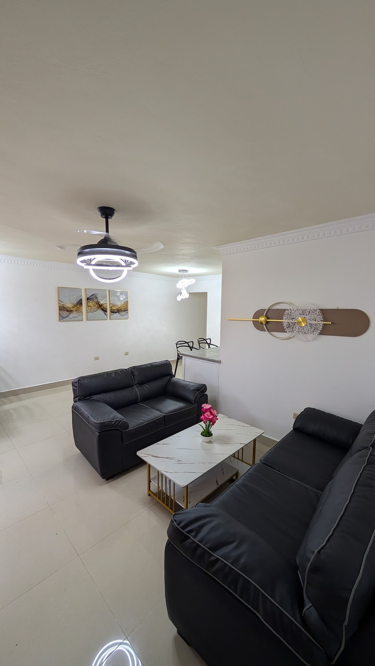 Hermoso y espacioso apartamento de 2 habitaciones completamente equipado para brindarle la mejor experiencia en Juan Dolio, cuenta con una sala acogedora con mueble amplio espectacular y televisión de 75" con equipo de sonido para disfrutar como una sala de cine de tus películas y series favoritas. También cuenta con colchones de alta gama versión americana que te garantizaran un buen descanso. Se encuentra de la playa a 2 minutos caminando. Tenemos una variedad de 8 juegos de mesas.