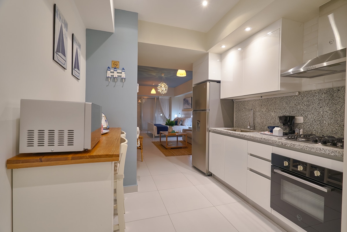 Imagine having a hotel Suite with all the integrated services of an apartment, the space lends itself to a low cost romantic escape, where you have a kitchen and a large private bathroom but also all the services of a hotel, a large balcony to enjoy an evening with an impressive view of the sea and the warm breezes of the Caribbean. Sauna, Gym pool and a quiet beach. You can request a reservation for a relaxing massage to end your dream vacations.