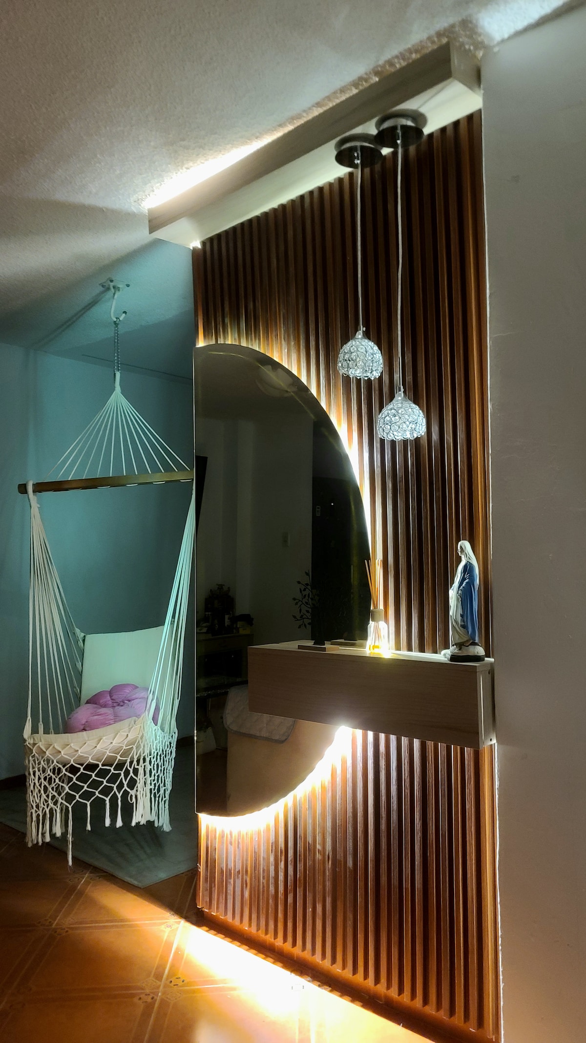 Come and experience sustainable living in harmony with nature. Let your senses be delighted in the beauty of tropical landscapes & andean mountain vistas. This private 2 bedroom apartment is complete with private kitchen, bathroom, & outdoor patio. The main bedroom has a very comfortable queen orthopedic bed, with space for a second single bed on request. The second bedroom has a single bed, or can be converted into an office or therapy space on request
