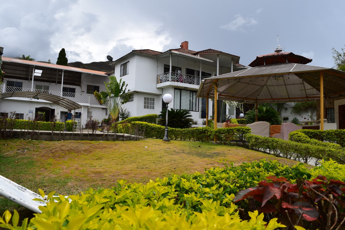 Relájate con toda la familia en este tranquilo lugar para quedarse, disfruta de un clima privilegiado en la ciudad de la Eterna Juventud, Vilcabamba. Te ofrecemos un hermoso lugar para que tú estadía sea confortable y puedas disfrutar junto a tus seres queridos de un màgico ambiente. Tendrás a tu disposiciòn un hermoso espacio abierto , en donde podras estar pendiente de tus niños en todo momento, mientras disfrutas de una amena conversación , de la parrilla , en piscina o del hidromasaje.
