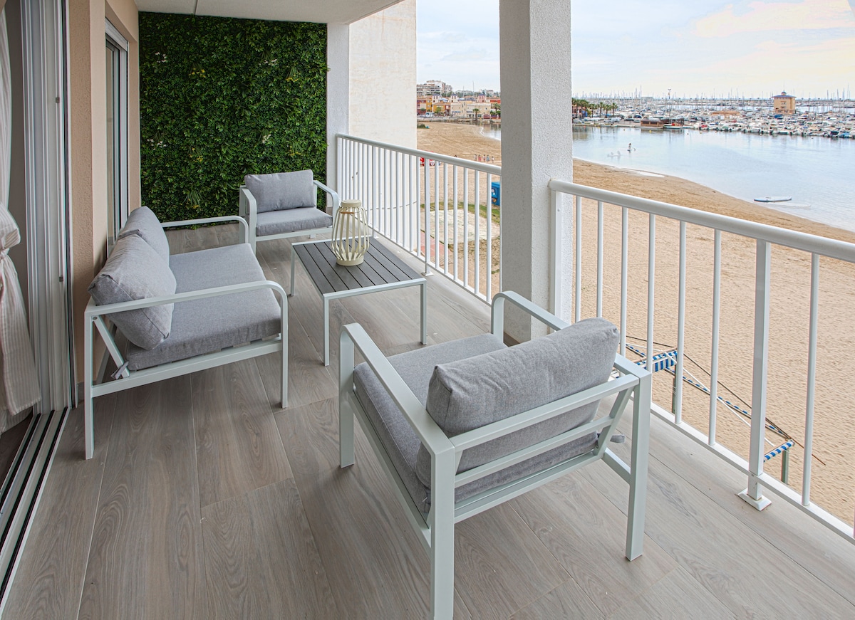 Step into a world of coastal charm with our beachfront retreat in the heart of San Pedro del Pinatar! Nestled on the top floor of a charming, classic building, this spacious 100-square-meter apartment invites you to unwind and soak in the breathtaking views of the tranquil, lagoon-like sea. Imagine starting your day on the private terrace, sipping coffee in a cozy chair, surrounded by a curated collection of books.