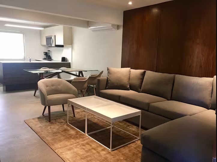 Espacioso, moderno y equipado loft ubicado en el centro de Monterrey. 🍽️ ☕️ - Cocina equipada con sartenes, ollas, air fryer, cafetera (café americano, descafeinado y te), utensilios de cocina, etc. 🛏️ - Cama Queen size, sabanas y ropa de cama limpias 🛋️ - Cómodo Sofa Cama ❄️ Mini Split con AC y Calefacción 📺 - TV de 50”, Netflix, Prime, HBO Max 🛁 - Baño completo, toallas limpias, secadora y artículos de aseo personal 👨💻 - Escritorio + Alexa 🏪 - OXXO 🏋️♂️ Multiples Amenidades