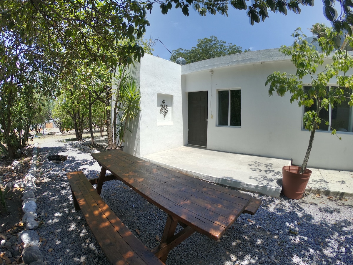 Here's the translation: "Rancho.Sabin0 is an agro-ecotourism project aimed at offering you an experience of connecting with the environment. The little house was built using the adobe technique and natural finishes. Designed for two people, but it can be adapted for four people. It features a king-size bed, kitchen, full bathroom, fireplace, terrace, bonfire area, swimming pool, and barbecue. If you wish, we also offer a meal service at an extra cost."